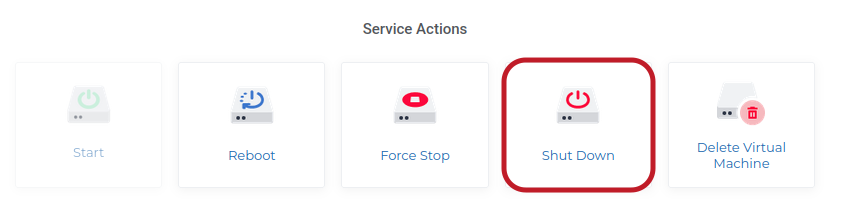 - Click "Shut Down." The VM must be stopped to create a template from it.